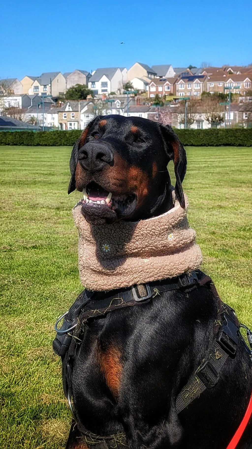 To determine the correct size, please measure the circumference of the widest part of your dog’s head - this ensures the snood will comfortably pass over.